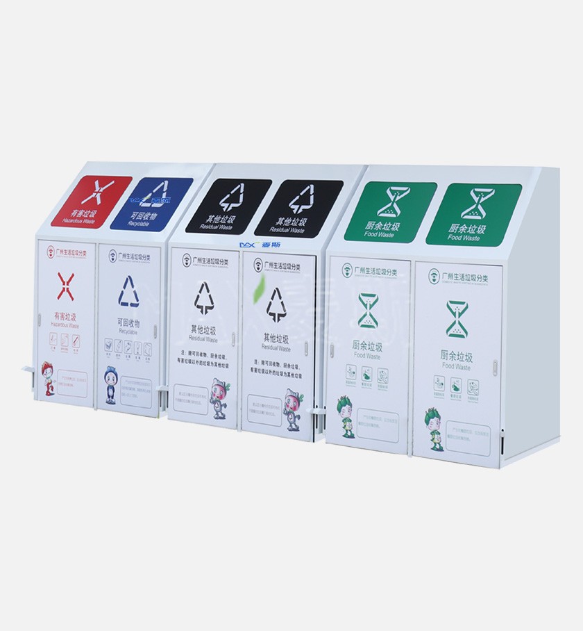 无触摸垃圾投放口;标识指引清晰;